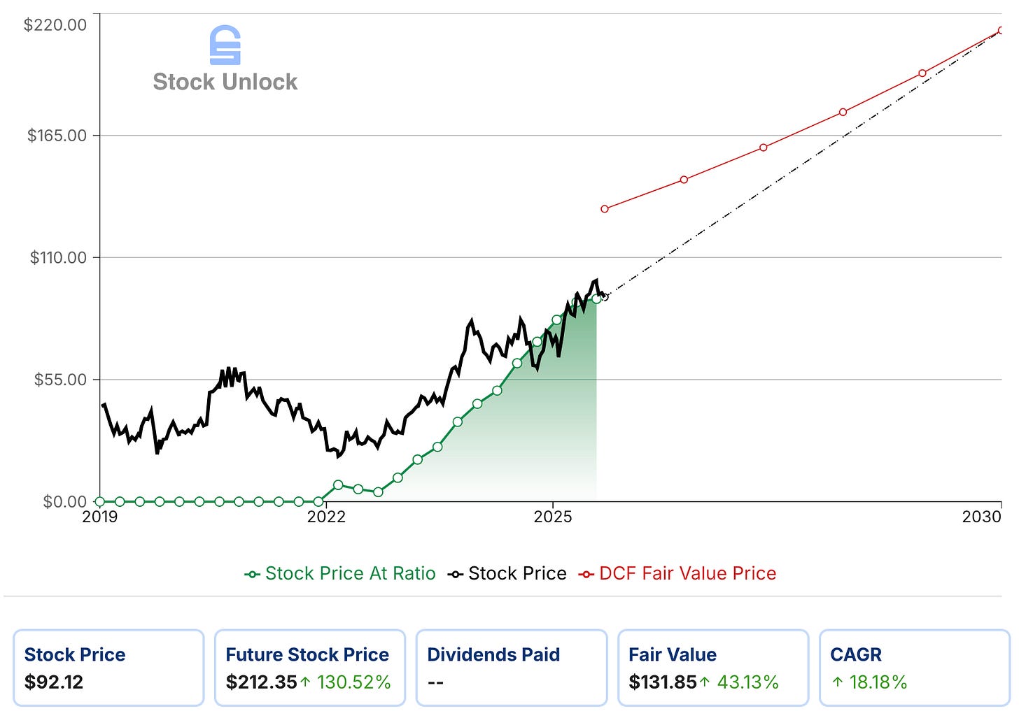 I view that as possible, but optimistic. For my base case, I haircut this to a conservative 20% FCF CAGR over five years - my 20% FCF CAGR assumption sits below management’s framework of profits growing >2x Gross Bookings, leaving room for execution slippage. I assume diluted shares outstanding grow a modest ~1% over the same period (conservative, given buyback programs), and I hold the exit multiple at 22x P/FCF, roughly where the market has traded recently. On those inputs, year-5 FCF is $21.55 billion; at 22x P/FCF and on the projected share count, that implies a future share price a bit above $210. Discounted back at 10%, I get a current intrinsic value of $131 per share, which, against a current price of around $92, suggests Uber is trading at ~40% below my estimate of fair value. On these conservative assumptions, that gap implies the stock could compound at ~18% CAGR from today’s price, comfortably above my 10% hurdle rate.