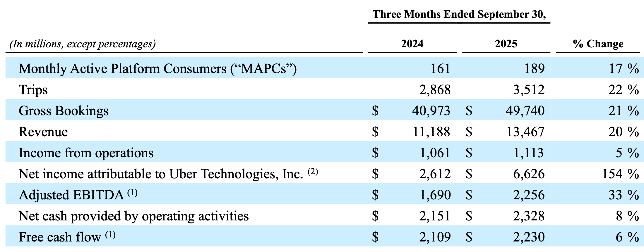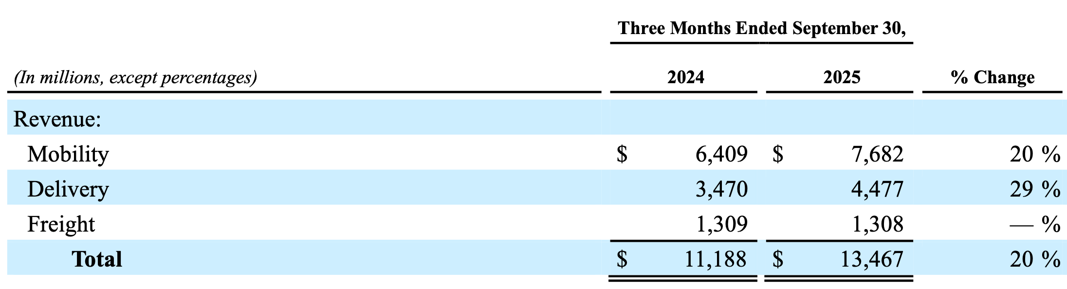 “After three consecutive quarters of 18% trip growth, we delivered 22% trip growth this quarter, driven by 21% Mobility trip growth, well ahead of our expectations.”